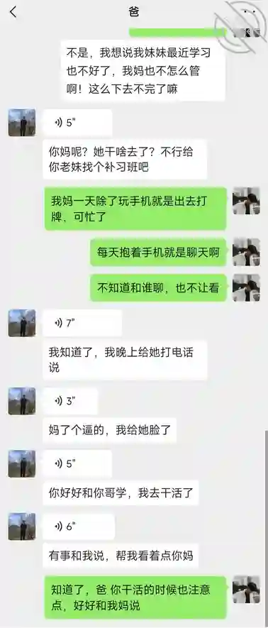 当时我都录这呢,想着必要时给我爸发过去让我爸评评理,我帮他看着我妈,和他告密有没有错,最后心软了我也没发,先给大家截图看看吧