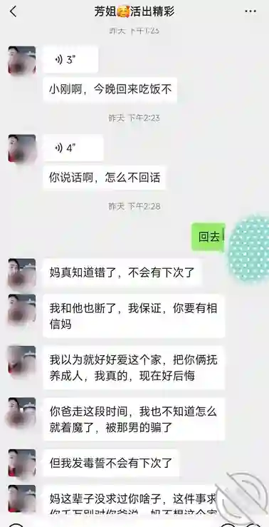 我妈也知道我这几天没去上班,肯定是给我表哥打电话了,我还天天不在家,她应该是猜到了,直接给我发消息让我回去