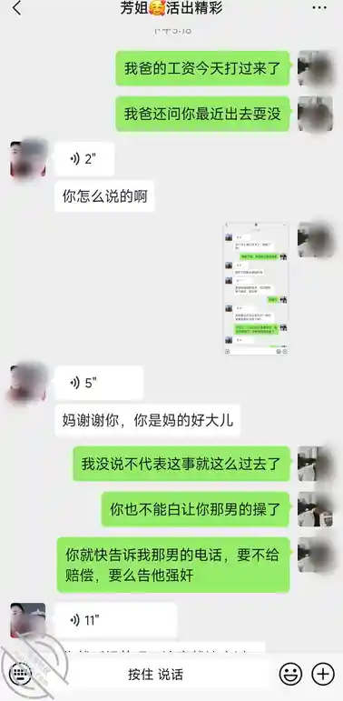 工资到账了我和我妈说了,她给我的感觉是情理之中,紧张的问我怎么说的,我把聊天截图给她发过去了,从她放心的语气我听出来她看我这么说挺开心,以为我不说就算过去了,但我真的过不去,为我爸感到不甘,所以我就管她要那人的联系方式,我妈嘴还是那么硬!就是不给我!老骚逼是真贱啊,还护着呢,后来让我一顿臭骂!她也不说话。